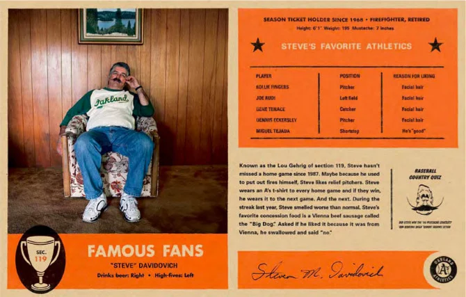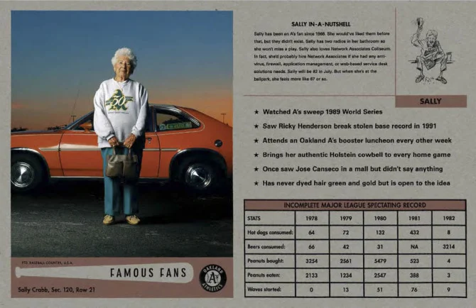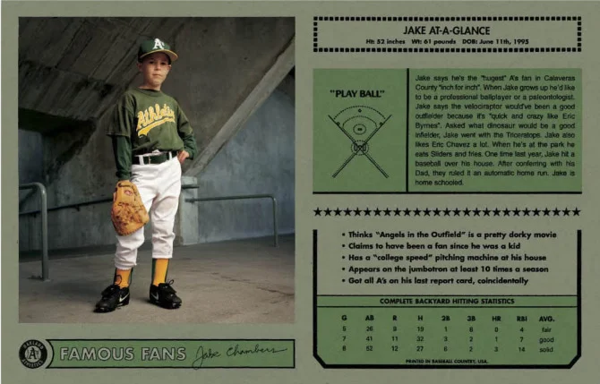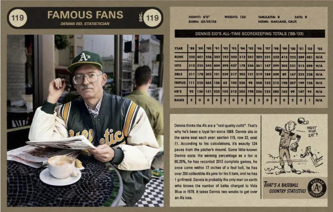 These "fan cards" and headline ads pay tribute to the Oakland A's most die hard fans. They appeared in the programs at the A's home games.